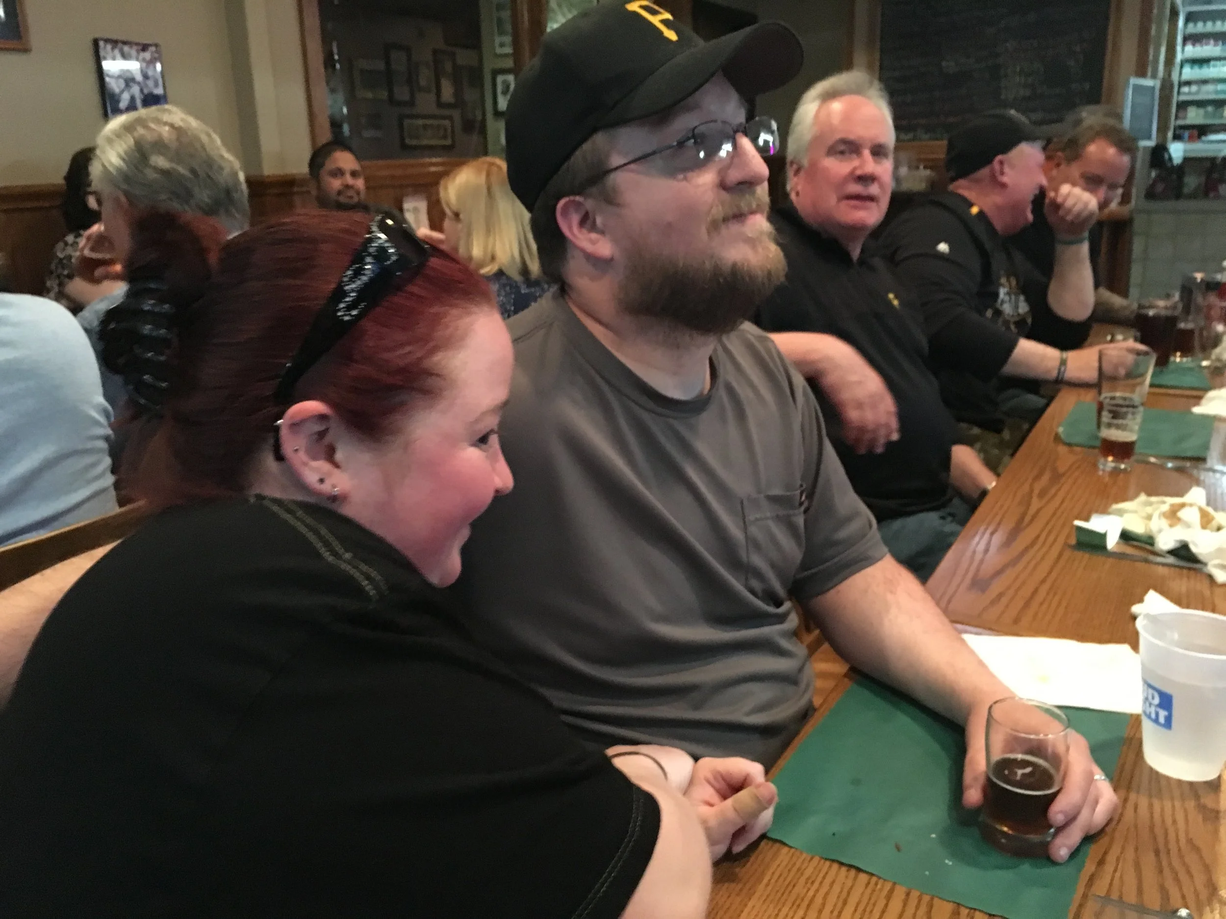 What a difference a few days makes. Last month I wrote how I was looking forward to a long vacation and this month I'm unemployed. Be careful what you wish for. I really enjoyed seeing you all. Being alone all day is tough sometimes and you helped me feel better. :) Thanks, and happy 30th birthday, to Eric who Nicole made me ambush for the halftime entertainment. Thanks also to Maria and Chris, George and David who joined us for the first time! Welcome! Don't forget that Cobblehaus Brewing Company will be opening very soon in Coraopolis. Thanks to founder/brewer Scott Mills for giving us the update. You'll notice there are no photos below. I'm not sure how my camera was on the "live" setting, but they all turned out to be 2-3 second videos. I wasn't able to post them here, but you can view them on the Facebook page.